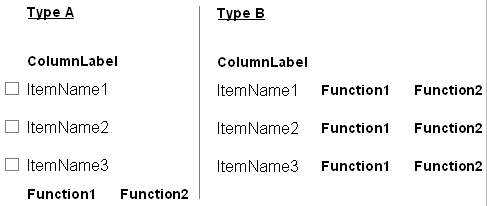 Прежде всего, пользователь должен увидеть, сколько всего предметов находится в списке. Если список пуст, выводится соответствующее сообщение, например, "список пуст". Если все операции могут выполняться со всеми предметами в списке, разместите функции работы со списком под самим списком так, как показано в варианте "А". В противном случае, используйте вариант "В". Если число предметов в списке в варианте "А" будет больше 10, расположите функции работы со списком предметов над списком. Вариант "В" подходит для тех случаев, когда используется функция "Edit/Правка", с помощью которой меняются свойства выбранного предмета.