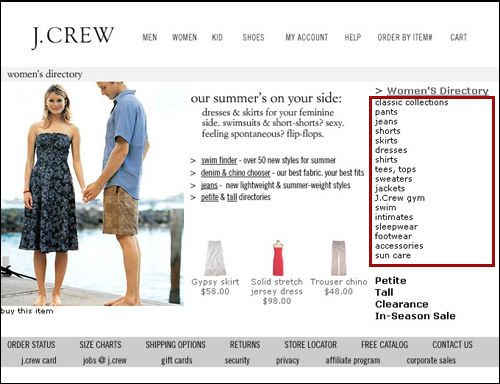 Данный пример показывает ссылки на дочерние элементы, расположенные справа. Центр страницы используется для рекламного материала.