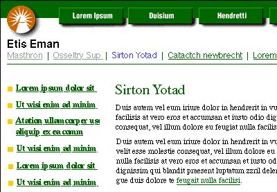 Томас С. Таллис (Thomas S. Tullis (tom.tullis@fmr.com)) из компании Fidelity Investments недавно провел исследование удобства работы с пятью различными шаблонами страниц для создаваемого интранет-сайта. Для того, чтобы проверить, помогает ли пользователям сама компоновка страниц найти различные элементы страницы, весь текст страницы был заменен имитацией - а именно, все слова были заменены непонятной чепухой, точнее абракадаброй. Когда прочитать текст не представляется возможным, пользователям для выполнения теста приходится полагаться только на характерные аспекты компоновки страницы. Если сама компоновка работает даже тогда, когда пользователи не могут понять содержимого страницы, значит есть надежда, что шаблон сможет пережить "издевательства" редакторов, которые будут наполнять шаблон текстами различного качества.