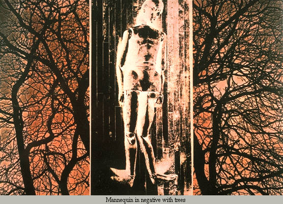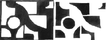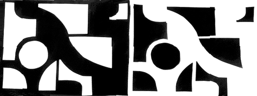 Данный пример (см. рис.) - результат упражнения, когда студенту дается задание вырезать из бумаги определенную композицию используя белую и черную бумагу. Это позволяет избавиться от привычки игнорировать фон и рассматривать его просто как пустое пространство. Эффективное расположение объектов в отношении к отрицательному пространству - очень важно для получения успешной композиции.